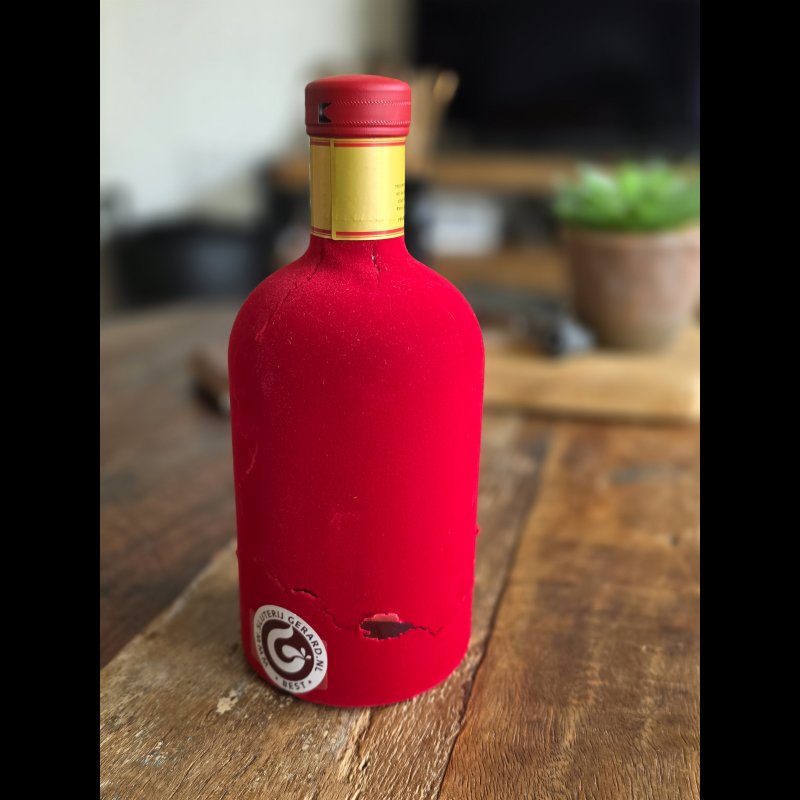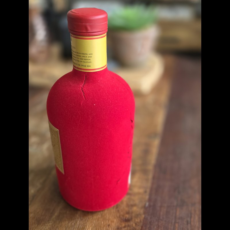 Fles Bryn Terfel. De fles is verzegeld dus ongeopend en in de orginele doos. De rode fluweel begint hier en los te laten.